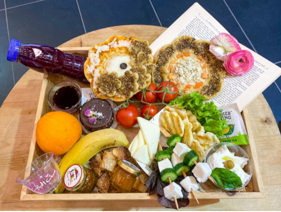 أمّا الهدية الأخرى التي يقدّمها المحلّ، فهي صينية فطور متنوّعة وغنيّة تصل إلى الأم صباحاً، مؤلَّفة من منتجات محلية بـ900 ألف ليرة (مع الصينية الخشب).