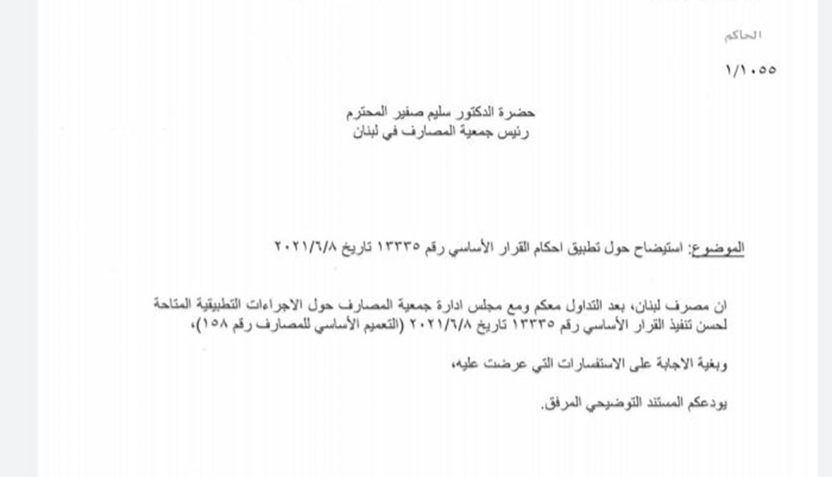 إيضاحات مصرف لبنان حيال التعميم 158 تقطع الشك باليقين: