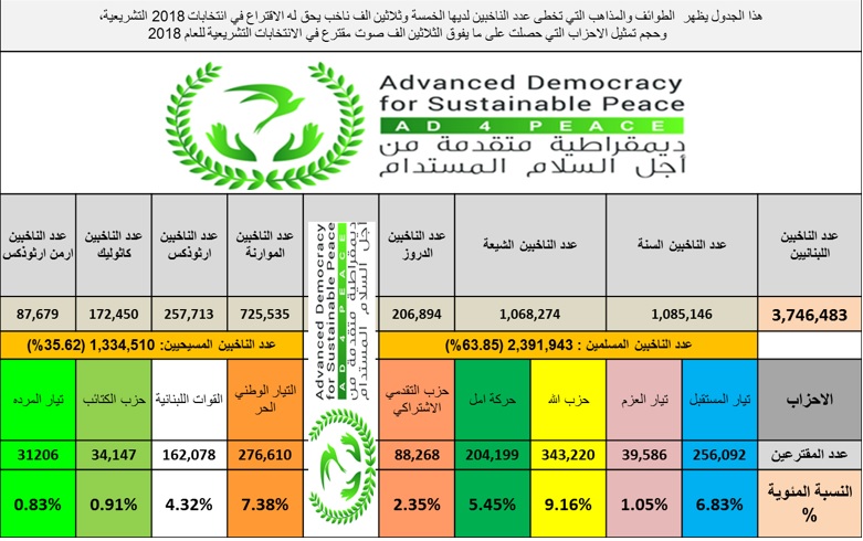 أما إن غصنا أكثر في أرقام نتائج انتخابات 2018 مطبّقين نظام النسبية الكاملة التي تظهر الحجم الحقيقي من المقاعد المستحقة لكل حزب بما يوازي أصواته، فنرى حجم تضخم المقاعد لدى الاغلبية الساحقة من الاحزاب: