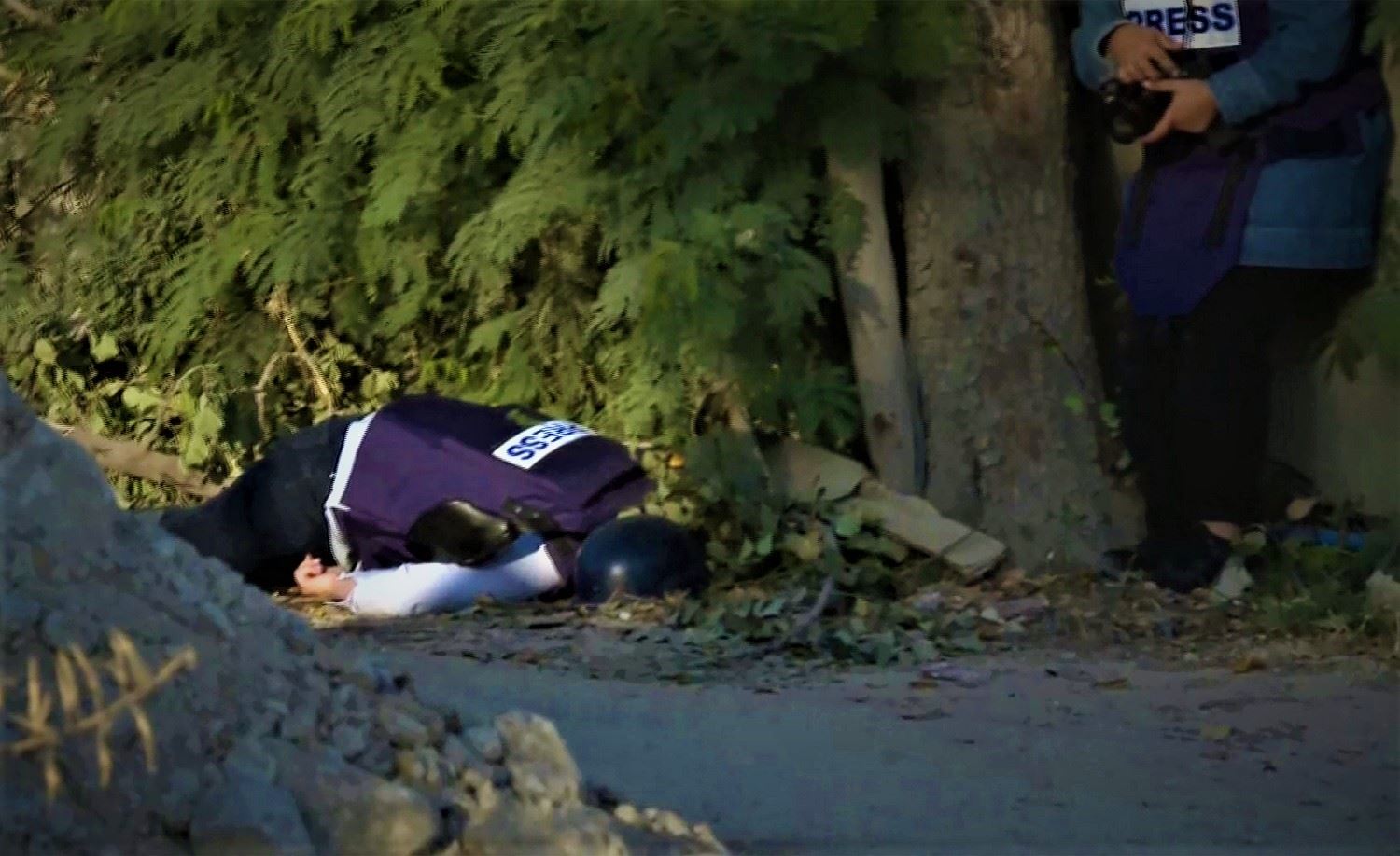 لحظة سقوط الزميلة شيرين أبو عاقلة في مدينة جنين الفلسطينية (أ ف ب).