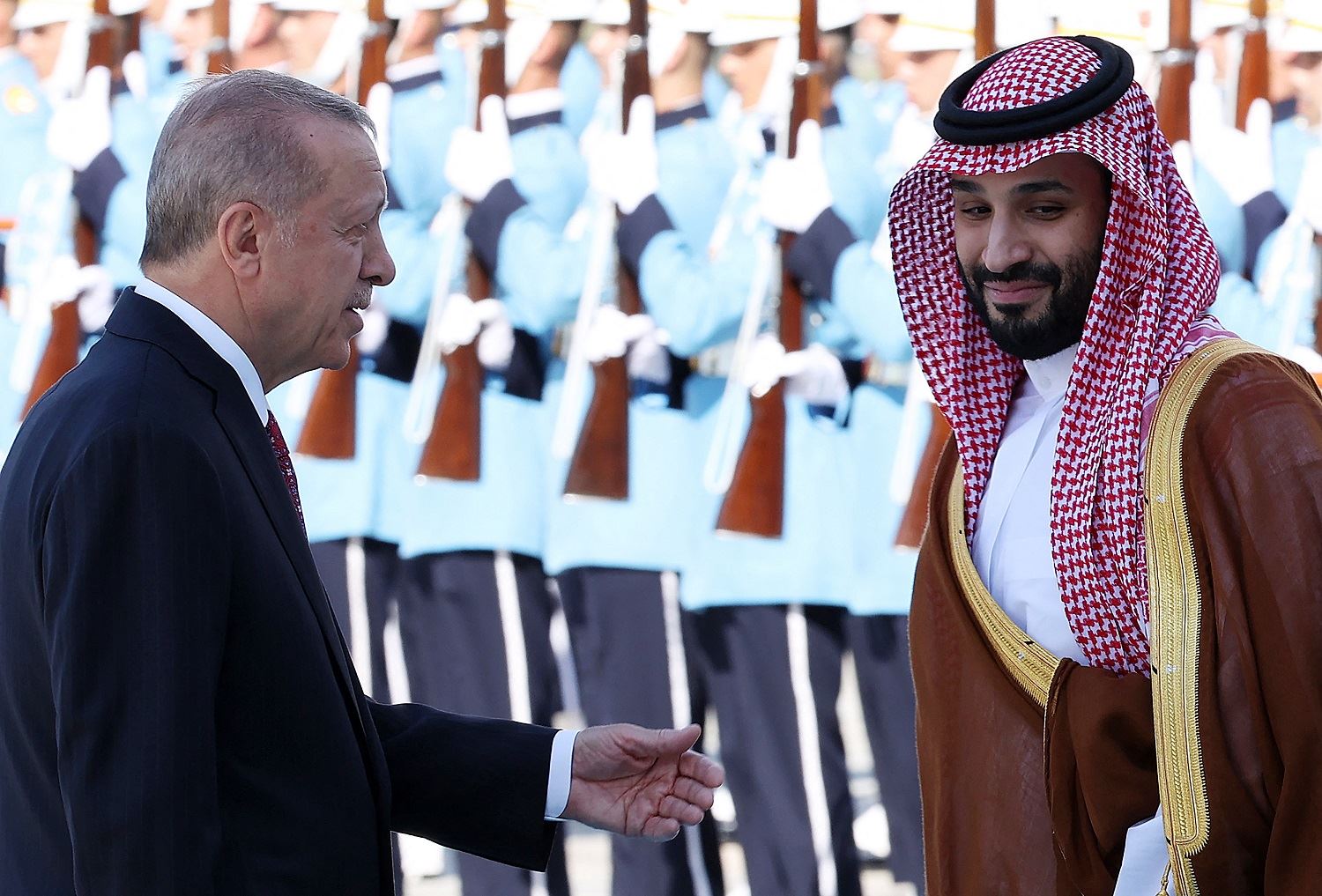 الرئيس التركي رجب طيب أردوغان يستقبل ولي عهد السعودية محمد بن سلمان في أنقرة (22 حزيران 2022 - أ ف ب).