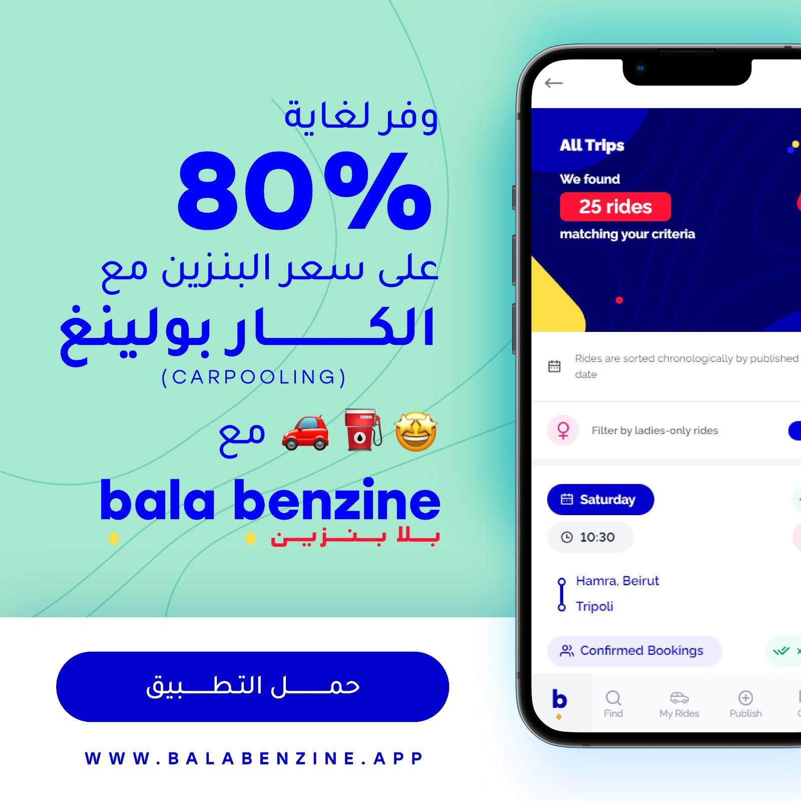 لمعرفة اكثر حول تطبيق Bala Benzine وتحميله، يمكن الضغط على الرابط التالي: http://www.balabenzine.app