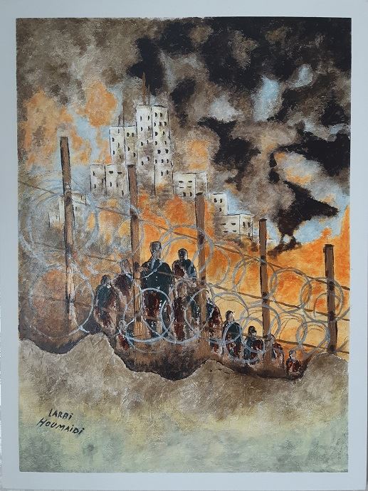لوحة "سياج الموت" من تهجير ١٩٤٨ إلى تهجير ٢٠٢٣ لوحة تعبيرية عن جرح عضال