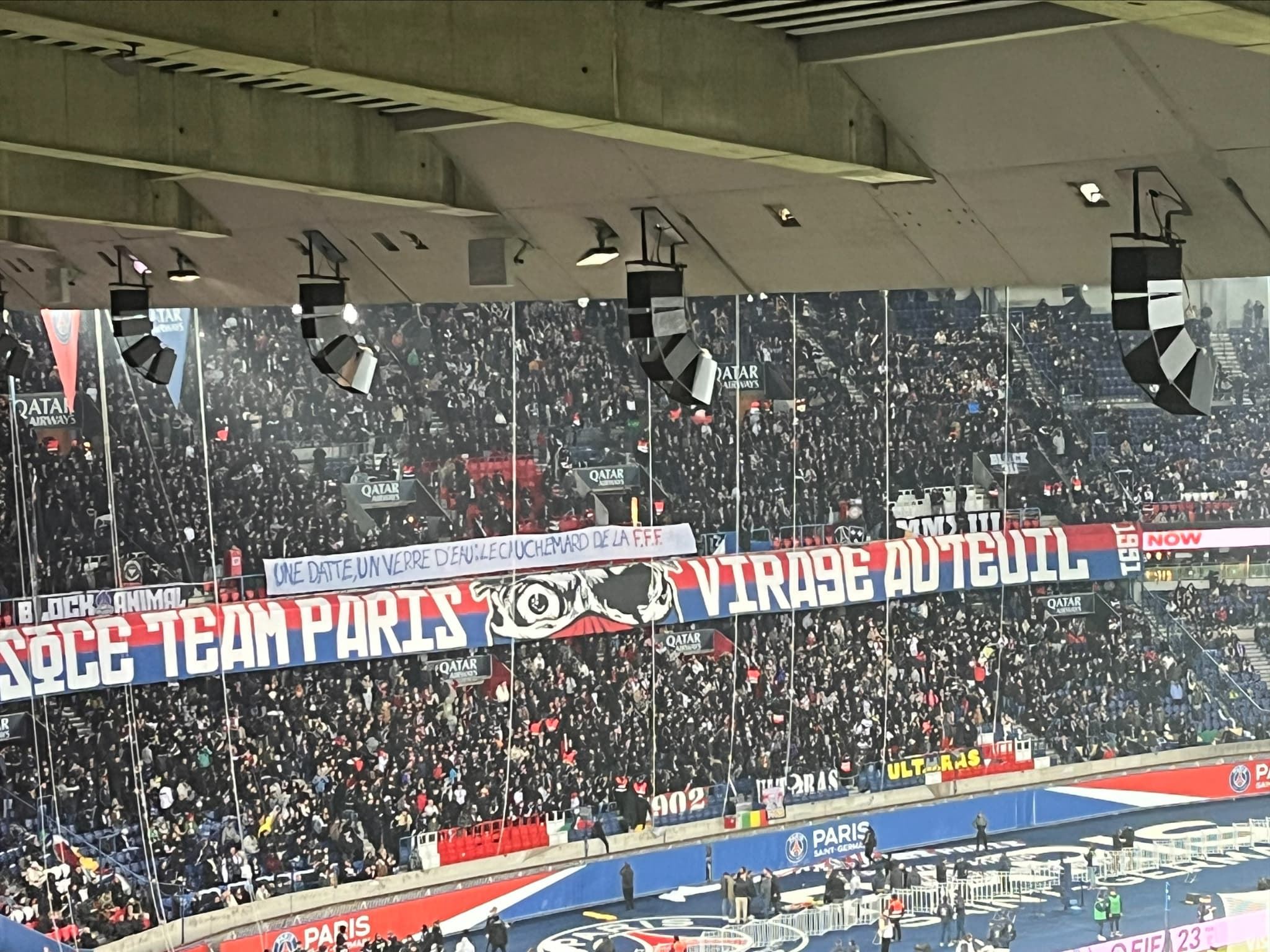 ورفعت رابطة "ألتراس باريس" لافتة تسخر من القرار في مدرجات ملعب "حديقة الأمراء" خلال مواجهة الفريق أمام ليون (صفر-1)، الأحد، ضمن المرحلة 29 من الدوري الفرنسي، وكتب عليها: "تمر وزجاجة مياه. كابوس اتحاد الكرة الفرنسي".