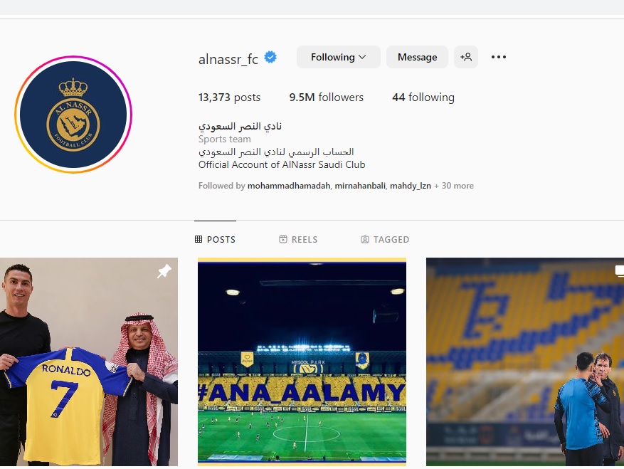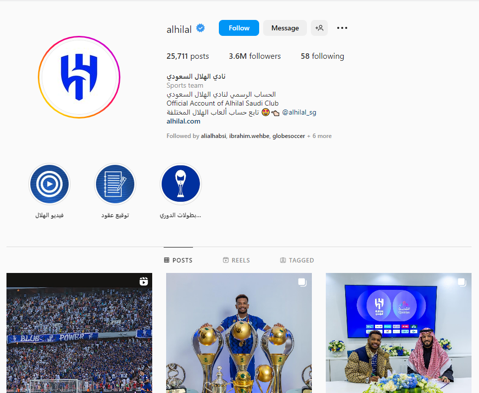 ويضم حالياً حساب الأهلي 9.1 ملايين متابع، مقابل 9.5 ملايين متابع للنصر، فيما يحتل الهلال السعودي المركز الثالث بـ3.6 ملايين متابع.