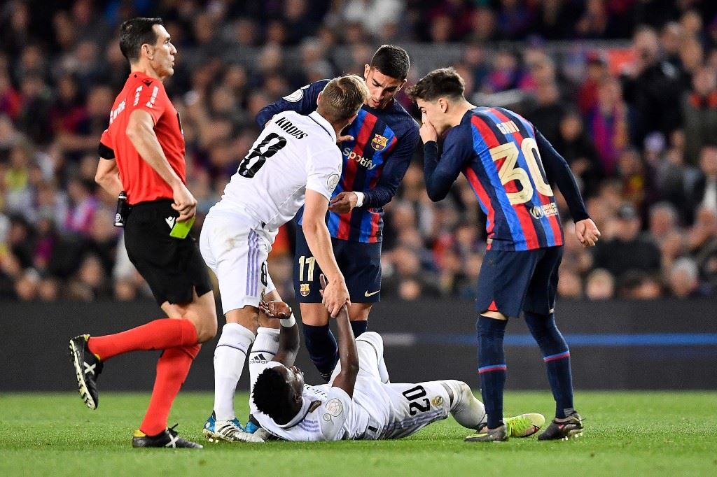 وتدخل غافي بقوة على فينيسيوس ليسقطه أرضاً، مما أثار غضب البرازيلي، ليتشاجر مع الإسباني، قبل أن يتدخل بعض اللاعبين لفض الاشتباك، ثم رفع حكم المباراة خوان مارتينيس مونويرا البطاقة الصفراء في وجه الثنائي.