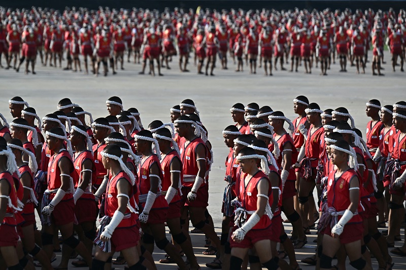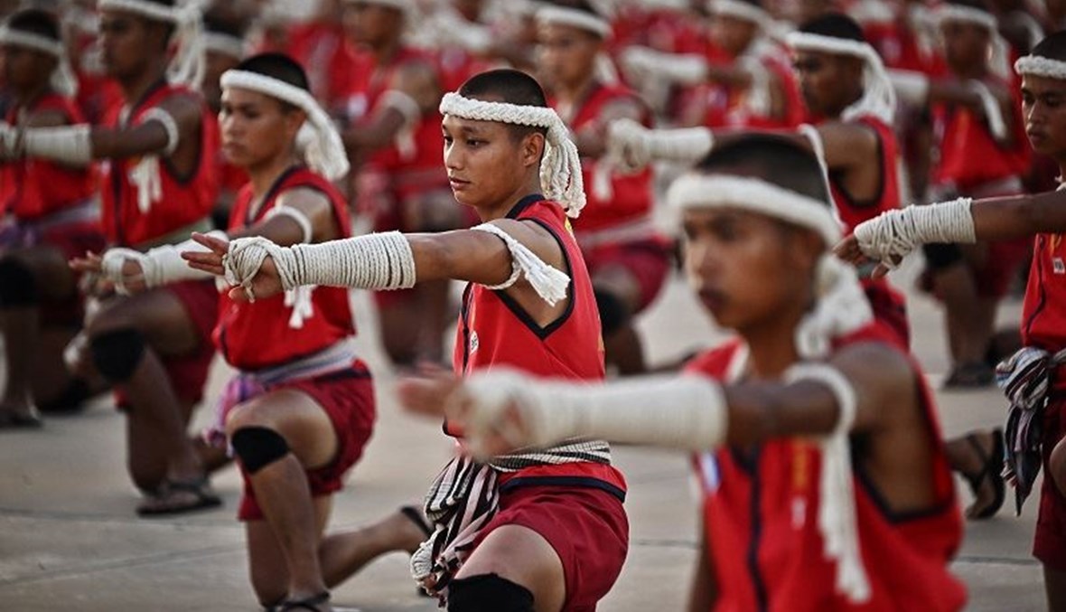 أدى الآلاف من طلاب الجيش التايلاندي والجامعات وحفنة من المتطوعين عرضاً قياسياً في حفل "واي خرو" لرياضة المواي تاي (الملاكمة التايلاندية) القتالية، قرب ستة تماثيل ضخمة لملوك سابقين.