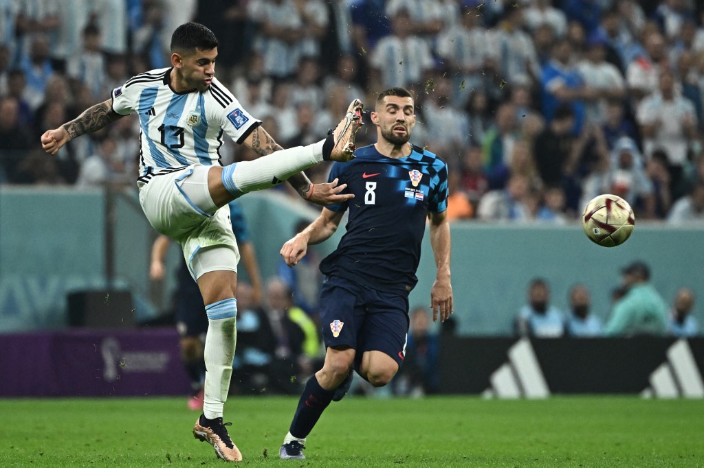 وبمؤازرة حشد كبير من الجمهور الأرجنتيني ما جعل رجال ليونيل سكالوني يشعرون كأنهم يلعبون على أرضهم في ملعب بلغ عدد الحاضرين فيه 88996 متفرجاً، حسم "المضيف" اللقاء في الشوط الأول بفضل هدفي ميسي (34 من ركلة جزاء) وخوليان ألفاريز (39) الذي قضى على أي أمل للكروات بالعودة بتسجيله الهدف الثالث أيضاً بتمريرة من قائده ميسي (69).