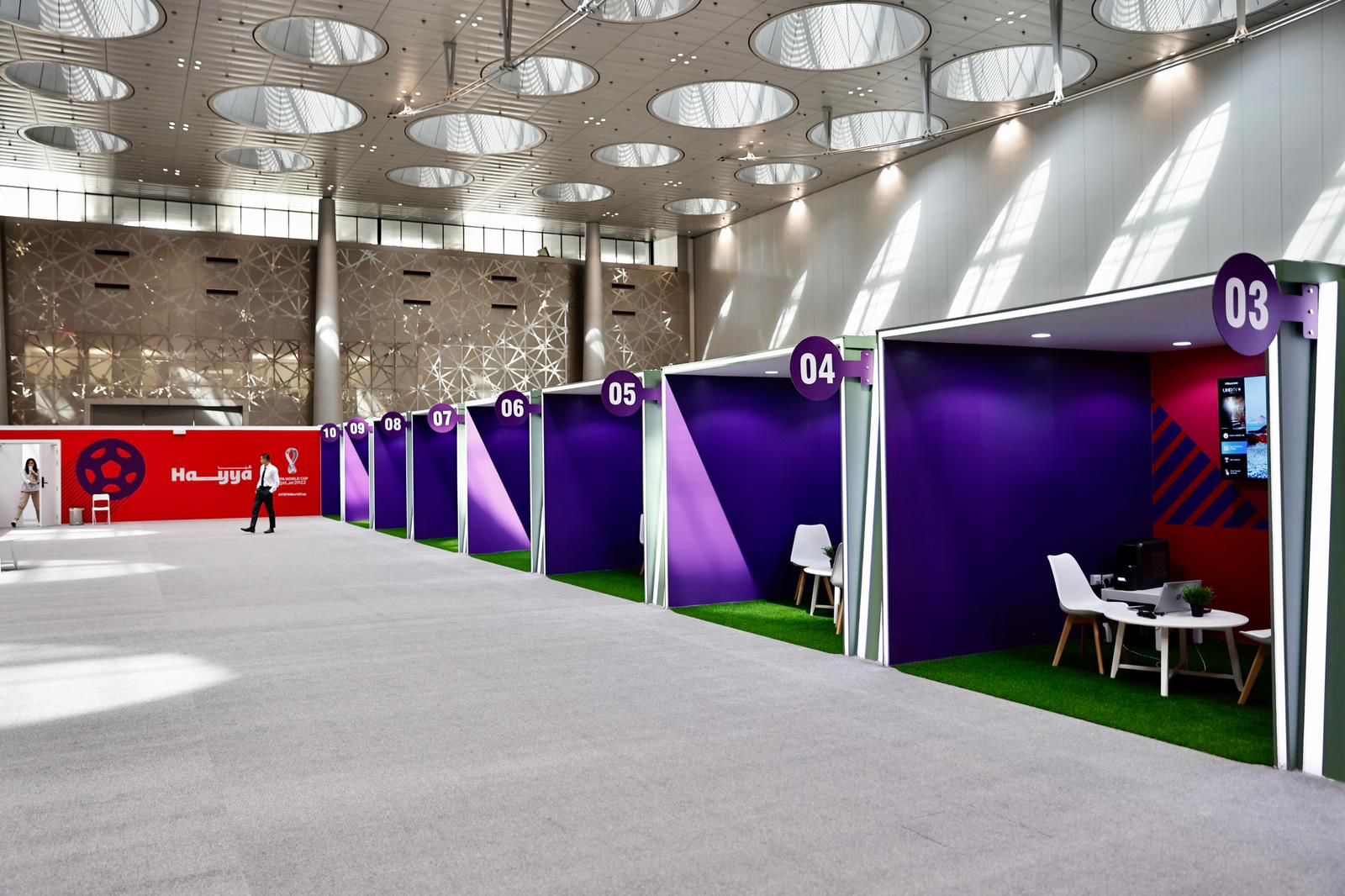افتتحت "اللجنة العليا للمشاريع والإرث" في العاصمة القطرية الدوحة مركز جديد لخدمات بطاقة "هيّا" الالزامية في مركز الدوحة للمعارض والمؤتمرات، المخصص لتقديم المساعدة لجمهور بطولة كأس العالم "FIFA قطر 2022™️"، التي تنطلق منافساتها في 20 تشرين الثاني المقبل. وحضر الافتتاح حشد إعلامي كبير من مختلف الجنسيات.
