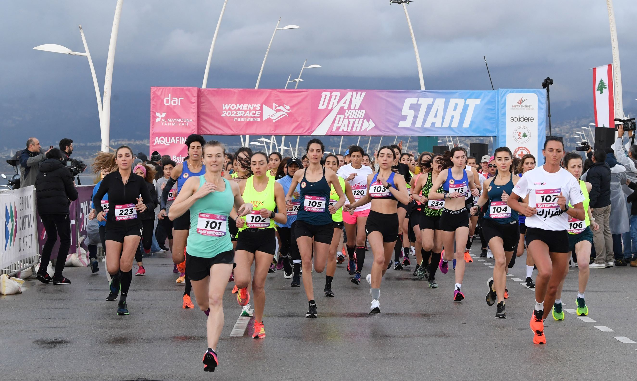 وعلى الرغم من الطقس الماطر والبارد فقد أقيم السباق وبأجواء حماسية في ساعات الصباح الأولى في دلالة على مدى إرادة وإصرار الشعب اللبناني على تعلّقة بالحياة والسلام والريادة في صناعة الأحداث الرياضية رغم الأوضاع الصعبة والتحديات التي فاقت كل الإحتمالات حيث عبّرت رئيسة جمعية بيروت ماراثون مي الخليل التي تابعت التحضيرات الميدانية خلال الساعات الماضية عن بالغ تقديرها وإحترامها للمشاركات والمشاركين الذين يعود إليهم الفضل والقرار في إقامة السباق بمواجهة ما يعانيه لبنان من تحديات سياسية وإقتصادية ومعيشية الأمر الذي فرض عوائق على مستوى الإجراءات اللوجستية لكن يبقى الهدف أن يكون السباق فرصة لتعزيز قدرات المرأة في عالم رياضة الركض وخلق جيل من العداءات اللواتي يملكن قدرات تنافسية في أحداث محلية وخارجية وبالتالي جعل السباق منصة للتأكيد على حقوق المرأة اللبنانية ونصرة قضاياها .