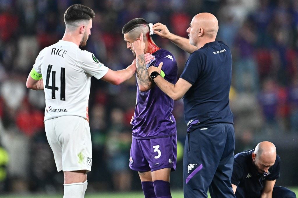 وألقى بعض من مشجعي وست هام مقذوفات تجاه قائد فيورنتينا كريستيانو بيراغي، مما تسبب في إيقاف اللعب قبل نهاية الشوط الأول من المباراة، التي أقيمت على ملعب "فورتونا أرينا" في العاصمة التشكية براغ.
