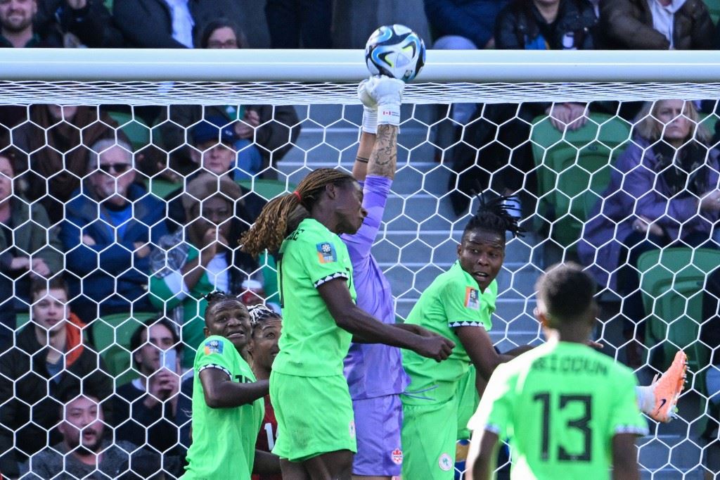 من مباراة كندا ونيجيريا (أ ف ب).