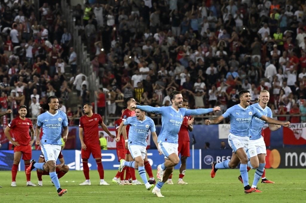 توج مانشستر سيتي الإنكليزي بلقب كأس السوبر الأوروبية في كرة القدم لأول مرة، وذلك بفوزه على إشبيلية الإسباني بركلات الترجيح 5-4، الأربعاء، في أثينا بعد التعادل 1-1 في الوقت الأصلي.