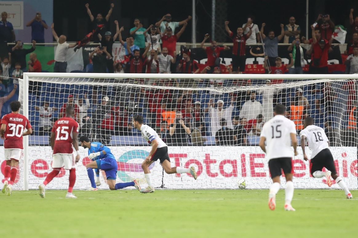 وانطلقت المباراة بدقيقة حداد على أرواح ضحايا زلزال المغرب وإعصار ليبيا، وبعد تبادل التسديد على المرمى من دون خطورة واضحة، افتتح الأهلي التسجيل عبر محمود عبد المنعم "كهربا" مستغلاً خطأ من الحارس الجزائري إثر تسديدة امام عاشور البعيدة إلا أن الحكم الغابوني بيار أتشو ألغاه بعد مراجعة تقنية حكم الفيديو المساعد "في أي آر" بداعي وجود خطأ على مهاجم الأهلي (8).