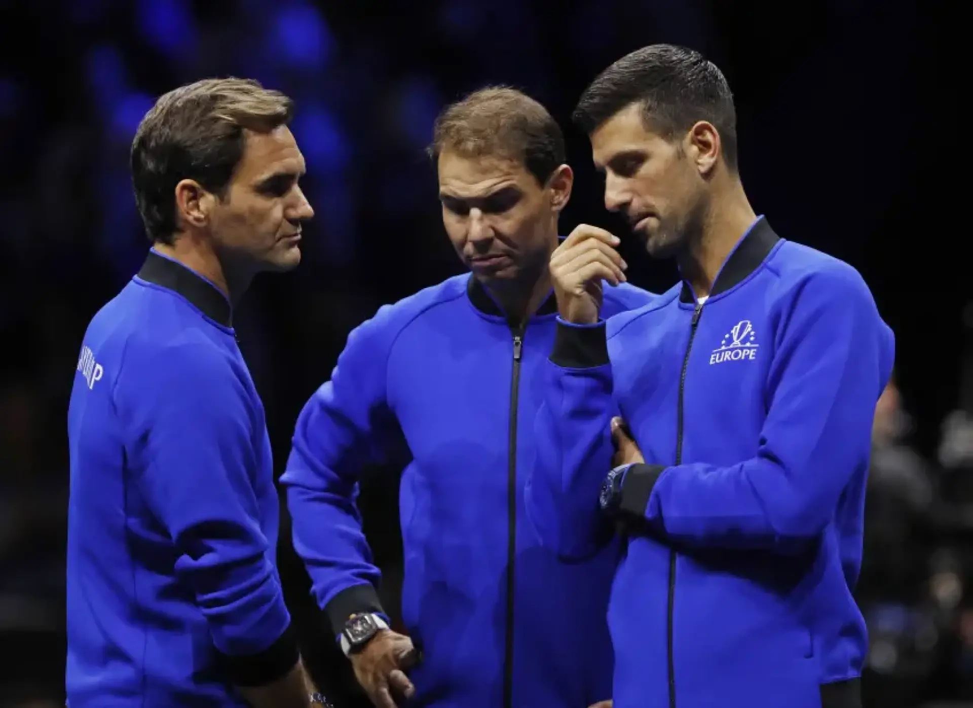 وانتشرت على وسائل التواصل الاجتماعي المختلفة صور فيديرر وغريمه رافائيل نادال اللذين تشاركا أحد أكثر المنافسات إثارة في عالم التنس وهما يجلسان معاً ويبكيان بعد مباراة للزوجي في كأس ليفر يوم الجمعة الماضي.