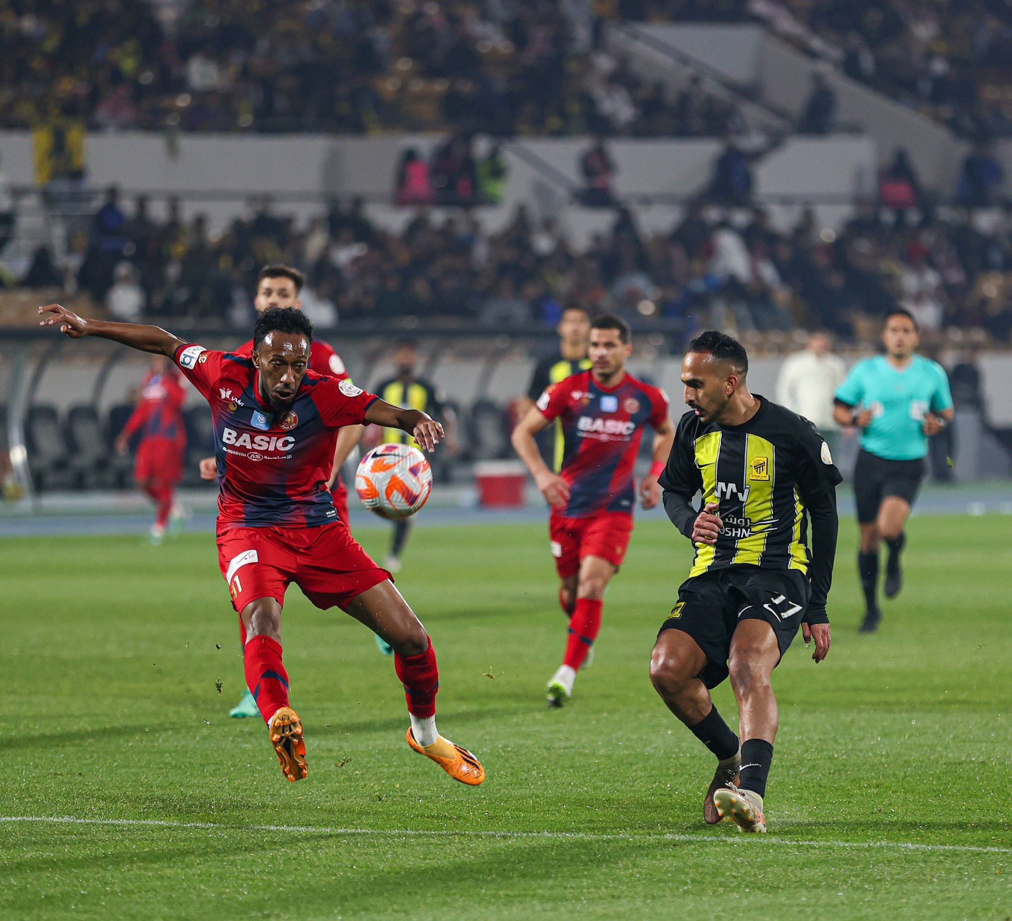 من مباراة الاتحاد وضمك. (أ ف ب)