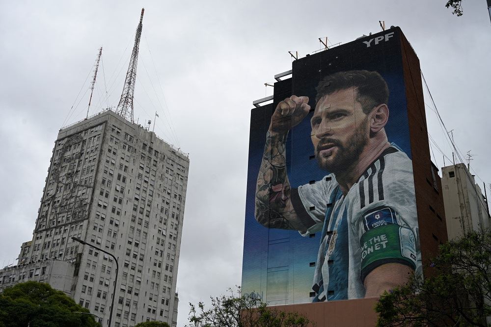 صورة لميسي على أحد المباني. (أ ف ب)