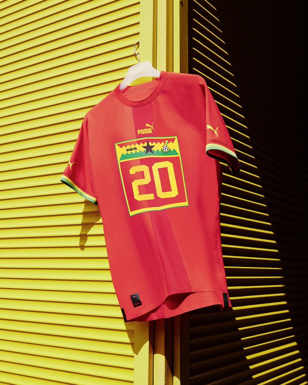 وأعلن منتخب غانا عن قميصه البديل باللون الاحمر وبنفس التقنية، أي شعار المنتخب ورقم اللاعب يتوسطان القميص.