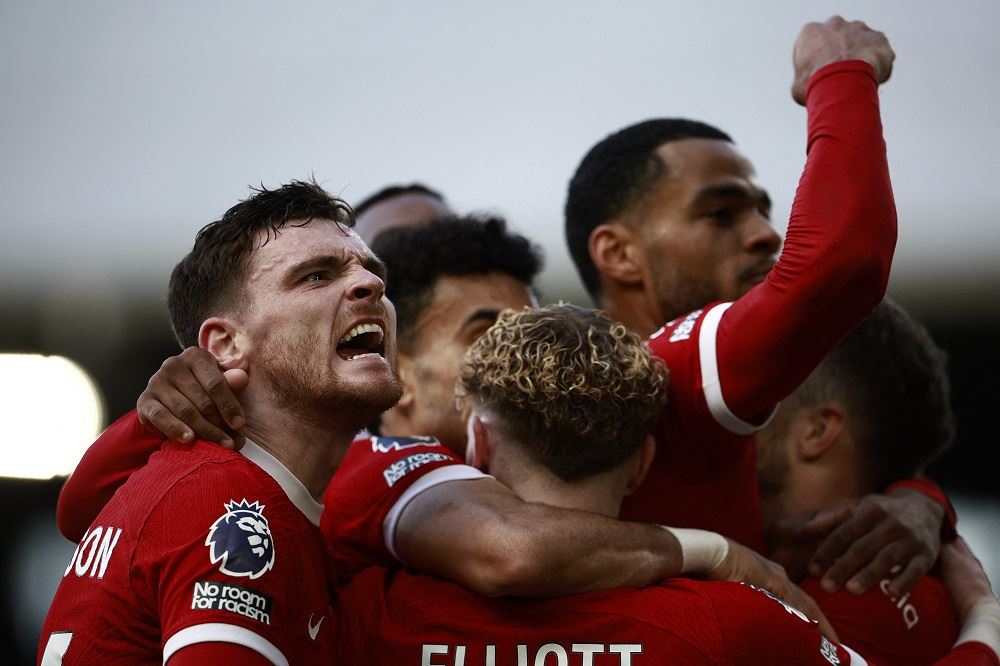 استعاد ليفربول توازنه ولحق بأرسنال إلى الصدارة في ظل غياب مانشستر سيتي حامل اللقب المنشغل بنصف نهائي الكأس حيث فاز السبت على تشيلسي 1-0، وذلك بعدما حول تخلفه أمام مضيفه فولهام إلى فوز 3-1، الأحد، في المرحلة الرابعة والثلاثين من الدوري الإنكليزي لكرة القدم.