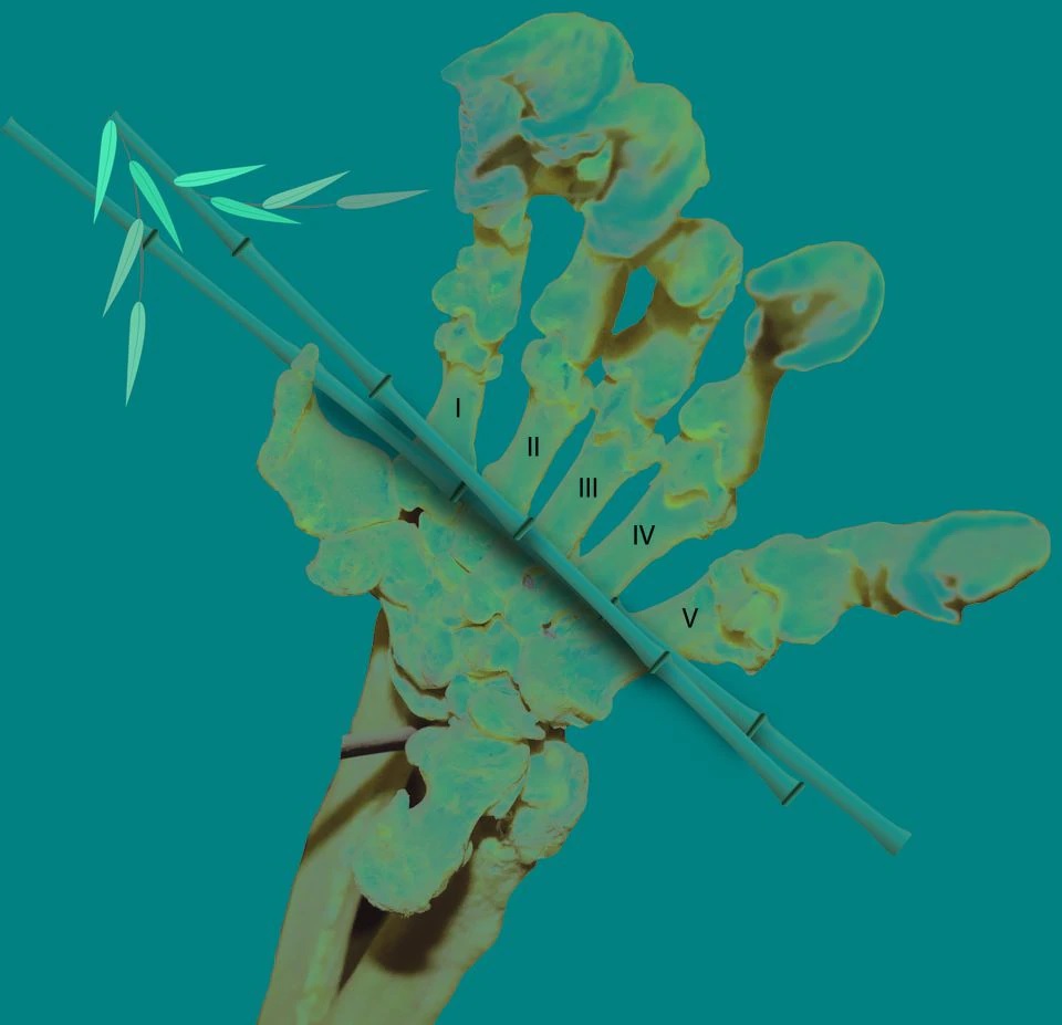 تساعد حفريات استُخرجت في الصين العلماء تكوين فَهم أفضل لإحدى عجائب التطور: الإبهام الزائف لحيوان الباندا العملاق، والذي يساعد هذا الدبّ المحب للعشب على التهام الخيزران الذي يشكّل معظم نظامه الغذائي.