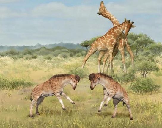 رقبة الزرافة لم تكن طويلة منذ البداية، إلا أن هذا الحيوان لطالما فضل استخدام أسلوب النطح للدفاع عن موقعه، وهو ما يظهره اكتشاف عينة أحفورية لنوع غير معروف سابقا من الزرافات كان يتمتع بما يشبه الدرع الدماغية الحقيقية.