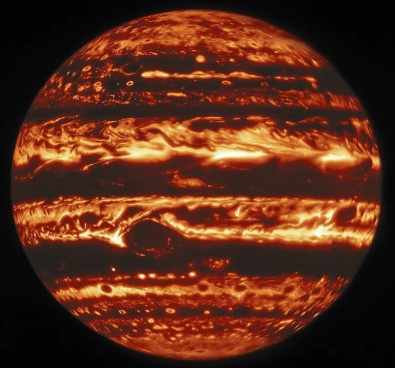 نشر موقع "ساينس أليرت" العلمي صوراً لكوكب المشتري باستخدام تقنية يمكن من خلالها التحكم في الإضاءة والأشعة تحت الحمراء والأشعة فوق البنفسجية.