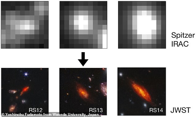 وفي الفترة الواقعة بين 8 إلى 10 مليارات سنة، كانت هذه المجرات بنصف حجم كتلتها النجمية الحالية، ما يجعل هذه المجموعة أبعد ما التقطته العين البشرية.