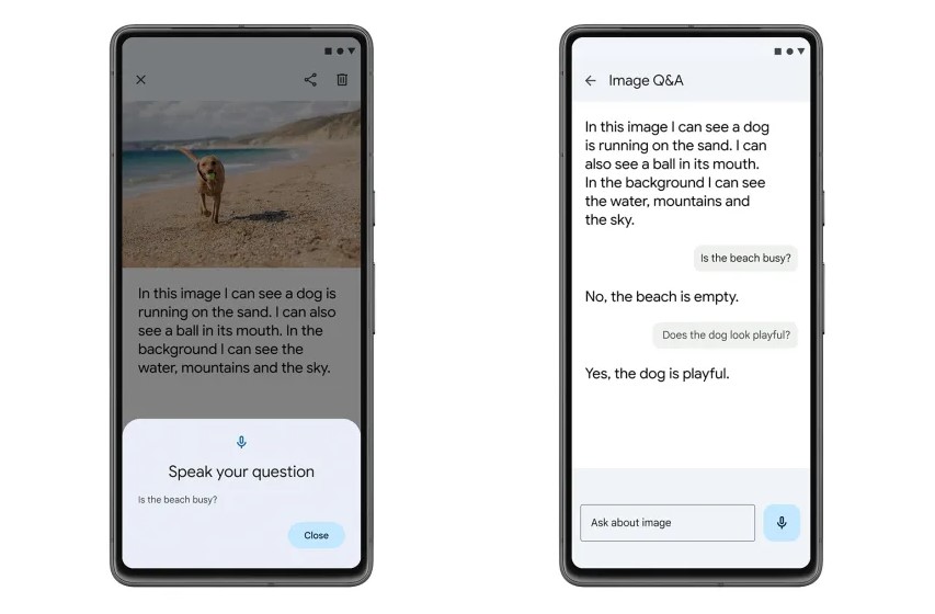 قامت "غوغل" بتحديث تطبيق "Lookout" الخاص بها على نظام "أندرويد"، فأضافت ميزة "سؤال وجواب الصورة" (image question and answer)، التي تستخدم الذكاء الاصطناعي لتوضيح مضمون الصور التي لا تملك توصيفاً أو نصّاً بديلاً.