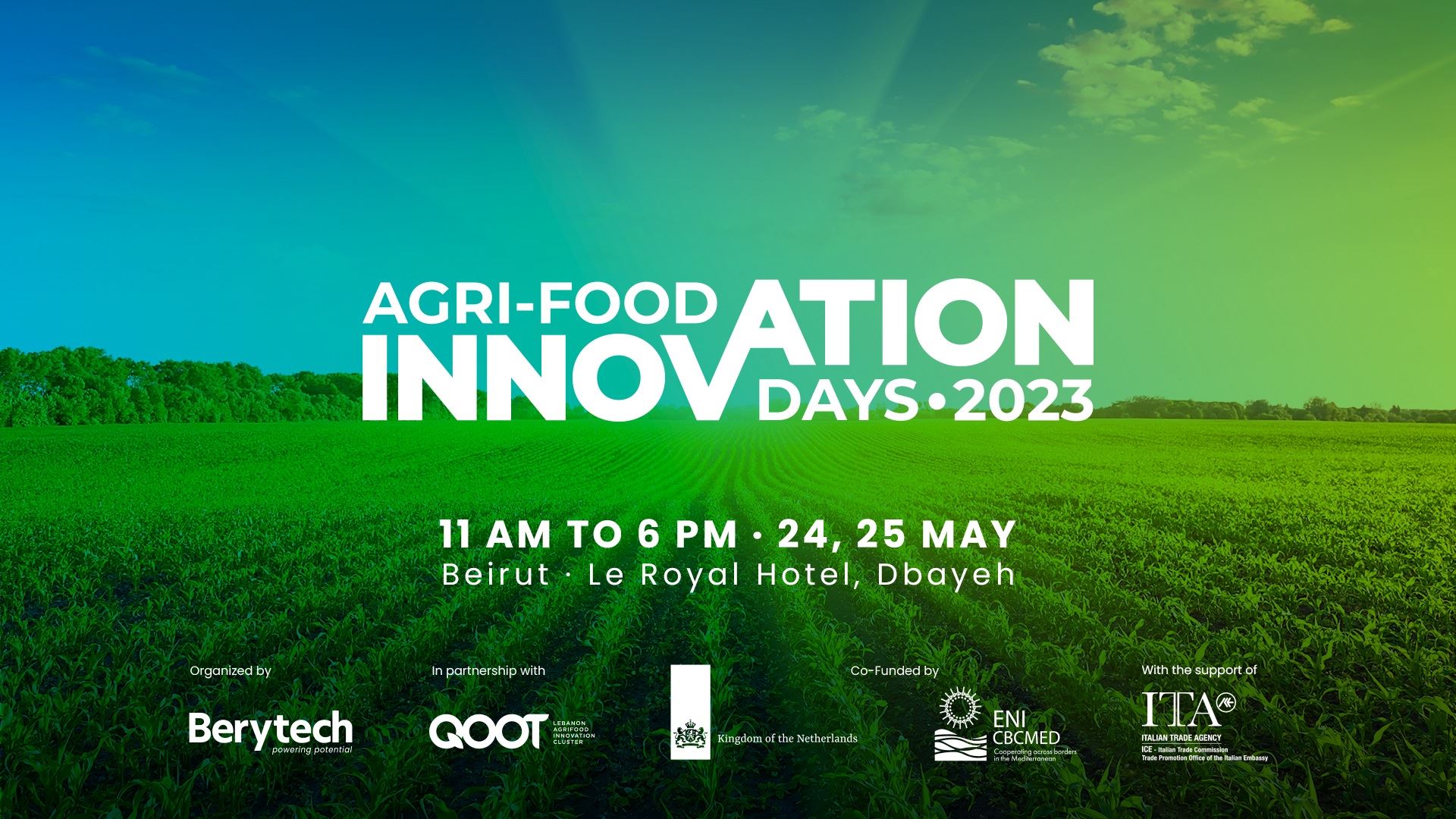 تنظم "بيريتك" (Berytech) الدورة الرابعة من "أيام الابتكار في الأغذية الزراعية" في 24 و25 أيار في فندق "لو رويال" في بيروت، حيث سيجتمع أقطاب قطاع الأغذية الزراعية والشركات ورجال الأعمال والشركات الناشئة والمستثمرين والباحثين للتواصل والتعلّم والترويج والاستثمار، بالإضافة إلى تسليط الضوء على التحدّيات المحلية والإقليمية وزيادة شراكات النظام البيئي والصناعي.