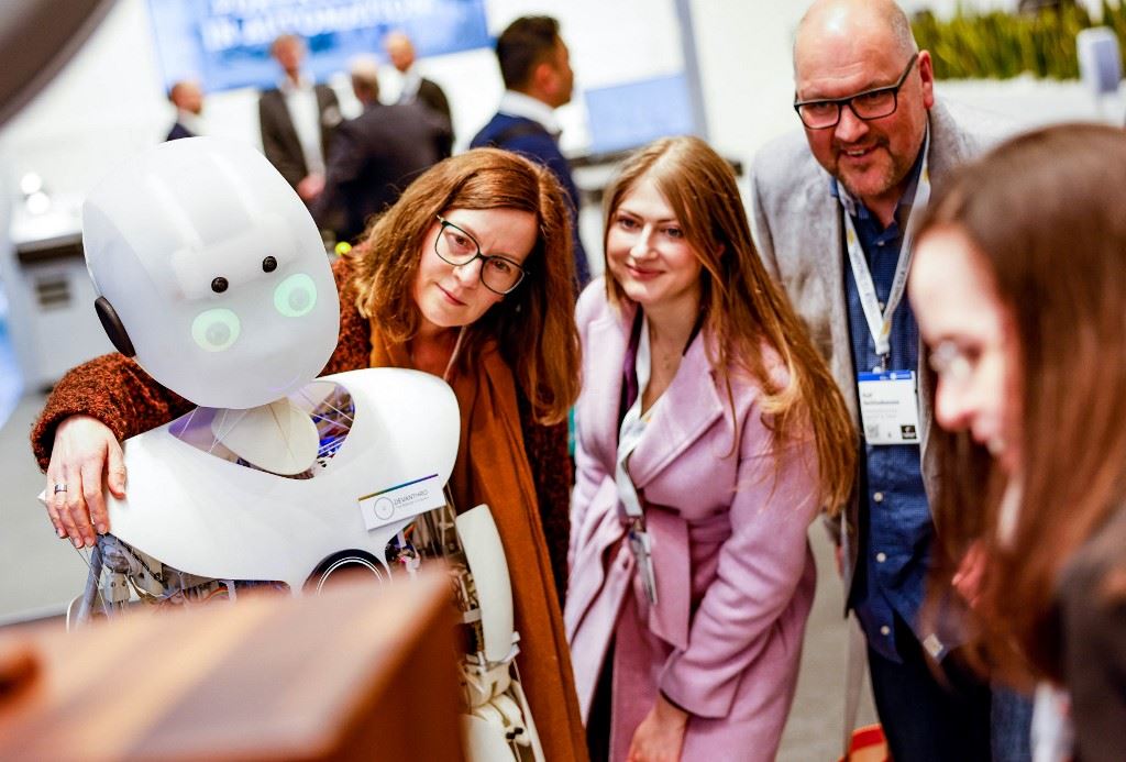 في جناح شركة الخدمات المعلوماتية الأميركية HPE وقف موظف شاب يتحاور مع مساعد افتراضي مزود بذكاء اصطناعي توليدي ينهل من البيانات المتوافرة لإنشاء محتوى جديد. والهدف هو تشغيل الذراع المفصلية لروبوت.