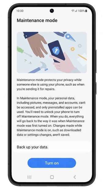 بدأت "سامسونغ" بطرح ميزة "وضع الصيانة" المصمّمة للحفاظ على أمان رسائلك الهاتفيّة وصُوَرك ومعلوماتك وحساباتك عند إصلاح هاتفك، بعد أن بدأت باختبار الميزة منذ شهر تمّوز المنصرم.