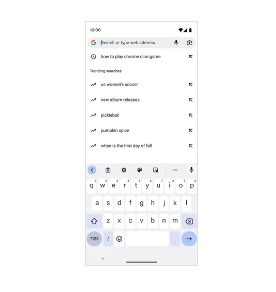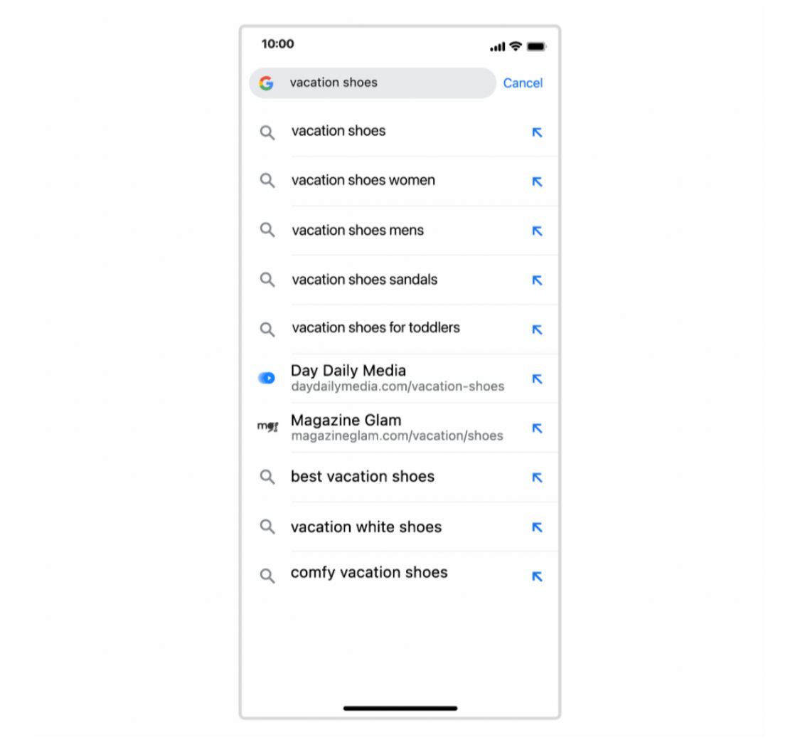 عندما تبدأ الكتابة في شريط عناوين "كروم" على هاتفك، سترى الآن 10 (بدلاً من ستة) اقتراحات للمساعدة في توجيه بحثك.