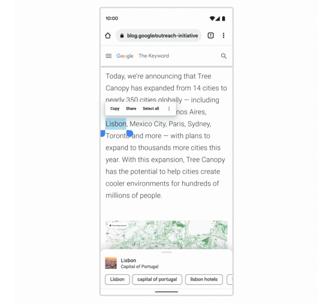 قبل بضع سنوات، قدّمت "غوغل" "Touch to Search" على "أندرويد" حتى يتمكّن المستخدمون من البحث بسرعة عن كلمة أو عبارة مباشرةً من صفحة الويب.