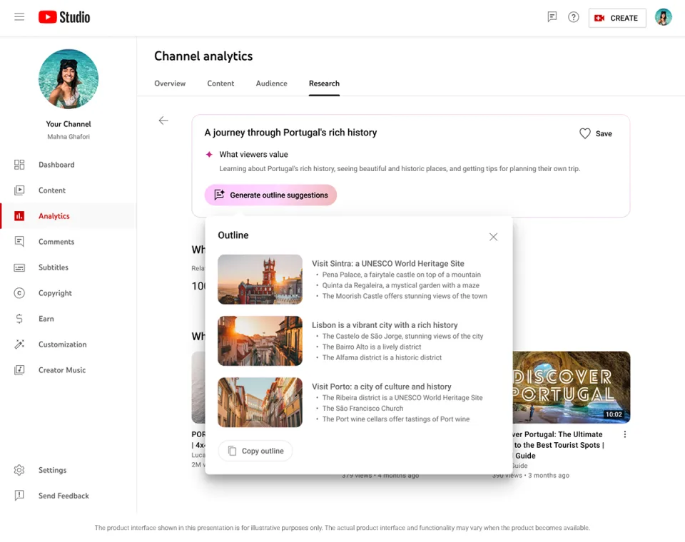 وسيحصل "YouTube Studio" على ميزة جديدة لتبادل الأفكار. على غرار مطالبة برنامج "شات جي بي تي" بأفكار الفيديو، يمكن لـ"يوتيوب" مساعدة المبدعين على تصور المشاريع.
