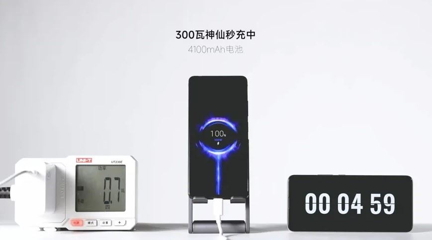 عرضت شركة الهواتف "شاومي" تقنية شحن هواتف محمولة بقوة 300 واط، مع تقليل وقت الشحن إلى أقلّ من 5 دقائق، بذلك تكون تفوّقت على تقنيتها الخاصة (بقوة 210 واط) وعلى شركة "Realme" (240 واط).