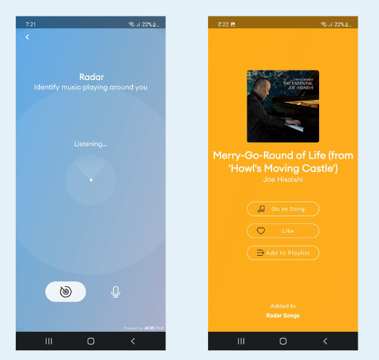 يتميّز هذا التطبيق بمحرّك قويّ يمكنه تحديد الأغنيات التي يتمّ تشغيلها في الخلفيّة، أو حتى عن طريق الكلمات المكتوبة. يُمكن أيضاً أن تدندن لحن الأغنية لمحاولة التعرّف عليها.