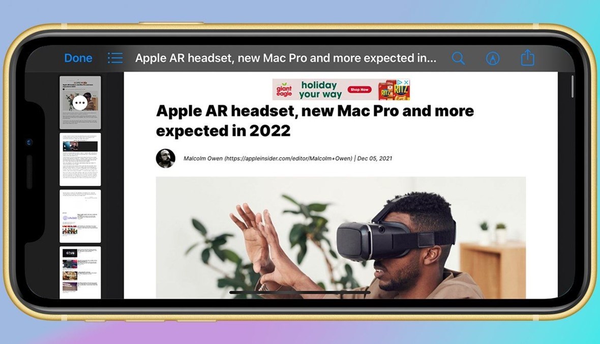 من أسهل الطرق لقراءة المقالات في حالة عدم الاتصال بالإنترنت هي حفظها كملف "PDF"، بفضل الميزة المفيدة التي تقدّمها "أبل"، إذ يُمكن تحويل صفحات الويب بسهولة إلى "PDF" على أجهزة "أيفون" و"أيباد".