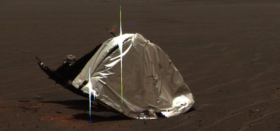 نشرت وكالة "ناسا" العام الماضي فيديو للمركبة الجوّالة على المرّيخ "بيرسفيرنس" وهي تهبط بالمظلّة بعد رحلة 505 ملايين كيلومتر. لكن الذي لم تخبرنا به "ناسا" هو أنّه في الوقت الذي كانت المركبة الفضائية الخاصّة بها تهبط بأمان على الكوكب الأحمر، كانت ترمي الدروع الحراريّة، المظلّات، الشبكات، وغيرها من "فضلات الفضاء" في جميع أنحاء منطقة قاع النهر القديم.