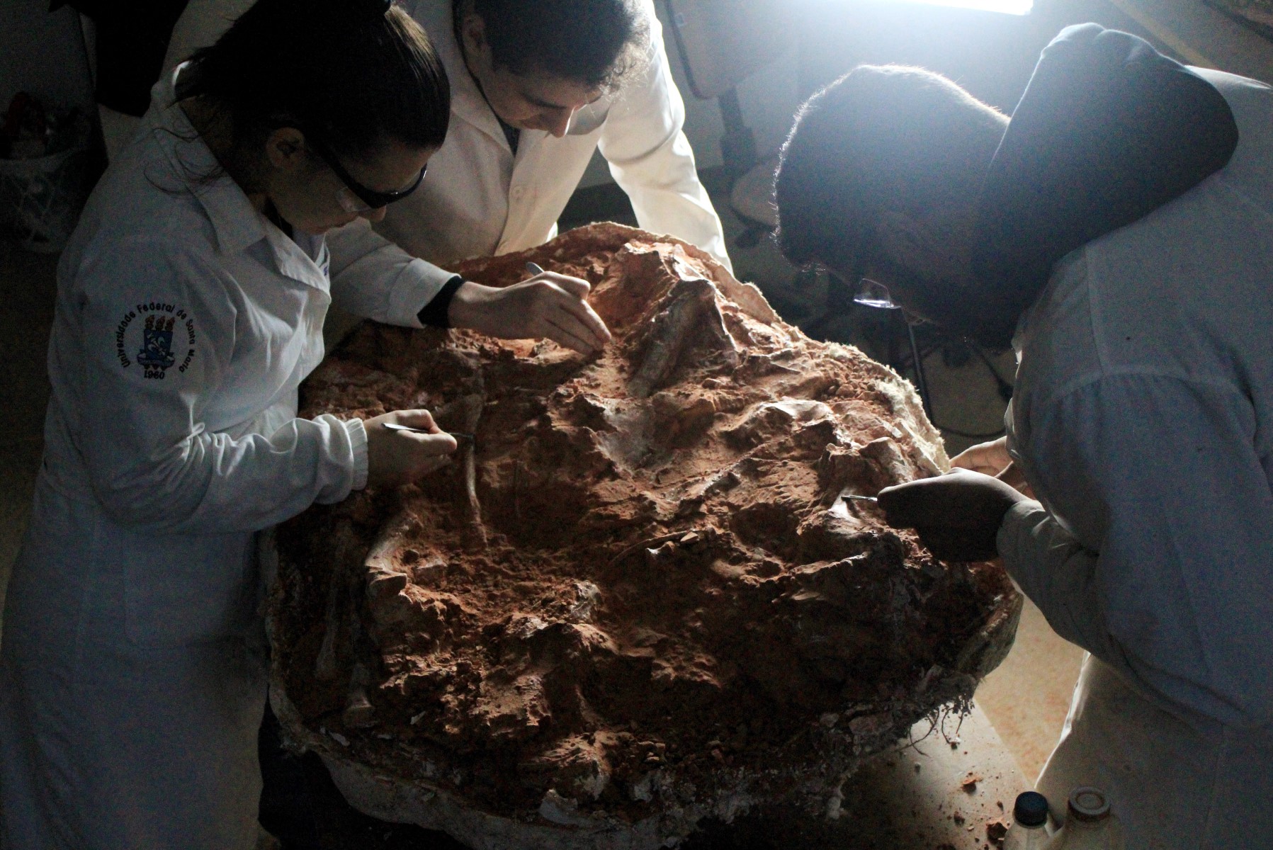 وبعد أربعة أيام من أعمال التنقيب، تمكّن فريق من علماء الحفريات من جامعة سانتا ماريا الفدرالية (UFSM) من إزالة ونقل كتلة الصخور التي تحتوي على الهيكل العظمي المتحجر إلى مركز أبحاثها.