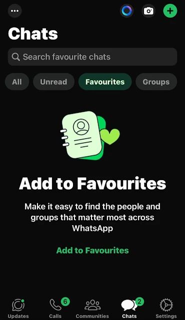 أطلق "واتساب" ميزة جديدة لنظام iOS (الإصدار 24.16.79) تُسمى "المحادثات المفضلة" ، والتي تتيح للمستخدم الوصول بسرعة وسهولة إلى جهات الاتصال والمجموعات الأكثر أهمية.