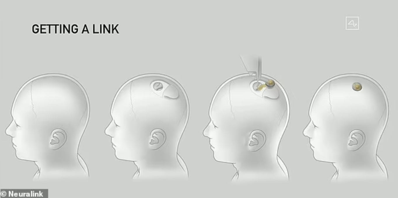 يتكوّن نظام "نيورالينك" من شريحة حاسوبيّة متّصلة بخيوط مرنة دقيقة مثبتة في الدماغ بوساطة روبوت يُشبه آلة الخياطة. يزيل الروبوت جزءاً صغيراً من الجمجمة، ويربط الأقطاب الكهربائيّة الشبيهة بالخيوط بمناطق معيّنة في الدماغ، ويخيط الثقب.
