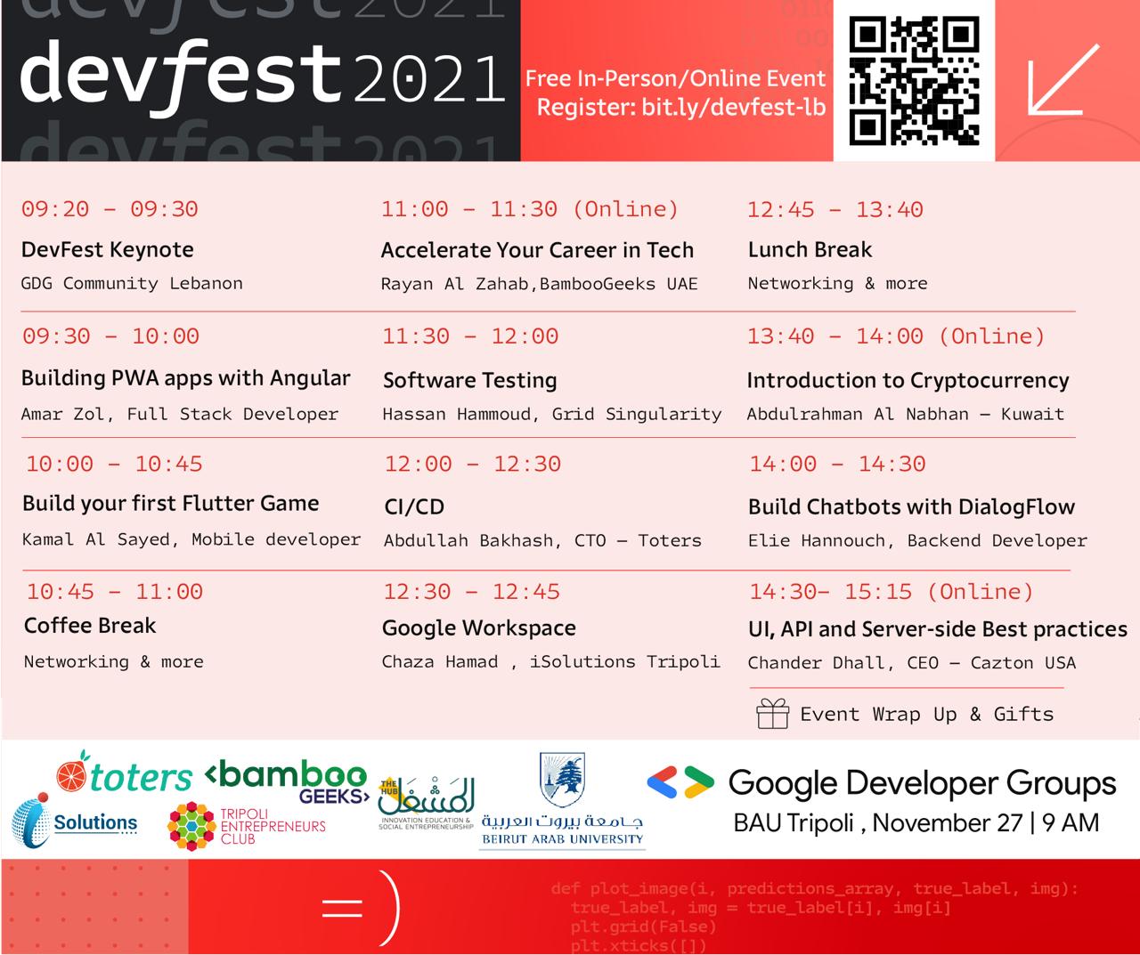 ويمكن المشاركة في الحدث من خلال الرابط الآتي: https://bit.ly/devfest-lb