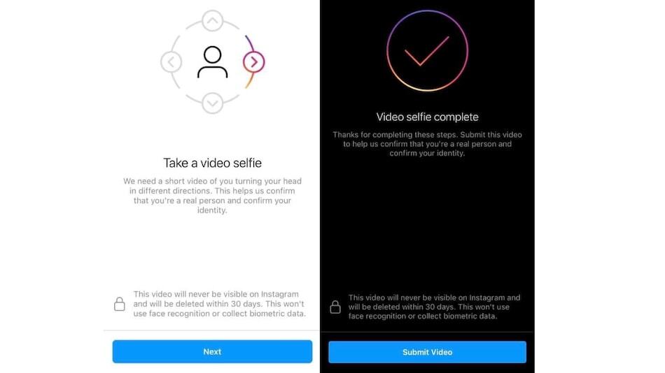 ويوضح التطبيق بعد إرسال الفيديو لتأكيد الهويّة أن هذا الفيديو لن يكون مرئيّاً على "إنستغرام" وسيتمّ حذفه من خوادم الشركة في غضون 30 يوماً.
