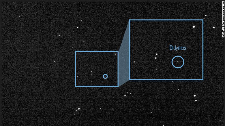 وستصطدم المركبة الفضائية بالقمر المتحرّك مع الكويكب "ديديموس"، الذي يحمل اسم "ديمورفوس"، ويبلغ قطره 525 قدماً (160 متراً). ويبلغ قطر كويكب "ديديموس" نفسه 2600 قدماً (792,5 مترًا)، واكتشفه علماء الفلك لأول مرة قبل 20 عامًا.