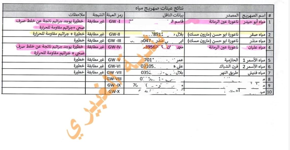 وما قامت به بلدية الغبيري ليس إلا عينة صغيرة من واقع أكبر ومخيف، حيث بادرت بإجراء فحوص لمياه الصهاريج في المنطقة وكانت الصدمة. تبين أن 7 عينات من 10 لمصادر المياه التي توزع بواسطة الصهاريج ضمن نظاق بلدية الغبيري هي ملوثة وغير مطابقة للمواصفات وتحوي جراثيم خطيرة مع وجود جراثيم ناتجة عن اختلاط بالصرف الصحي ومنها جراثيم مقاومة للحرارة.