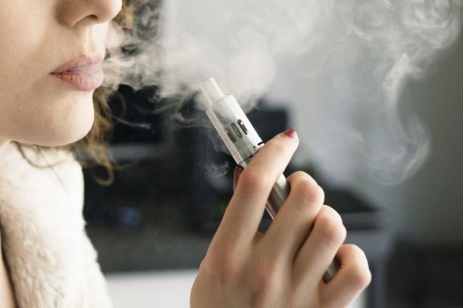 فتاة تختبر التدخين الإلكتروني ضمن بدع النيكوتين