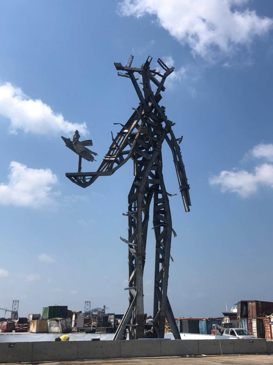 منذ تاريخ الانفجار المشؤوم، لم تهدأ هذه الشريحة في نشاطاتها الفردية، ولملمت آلامها الجسدية والمادّية والمعنوية، وركبت نفقاً افتراضياً مضيئاً رغبت بأن تحوّله إلى واقع. وهو ما يتسلّح به المهندس المعماري والفنان اللبناني نديم كرم من خلال تمثال "مارد من رماد"، الذي يبلغ ارتفاعه 25 متراً ووزنه 30 طناً، ومكوّناته قطع حديد صلبة جُمعت من بقايا عنابر المرفأ المدمّرة "تعبيراً عن استمرارية الحياة والإرادة الصلبة في البقاء"، ويدشَّن رسمياً السادسة والنصف عصر اليوم (الإثنين) على المدخل رقم 3 لجهة القاعدة البحرية للجيش اللبناني، في حرم المرفأ برعاية محافظ بيروت مروان عبود.