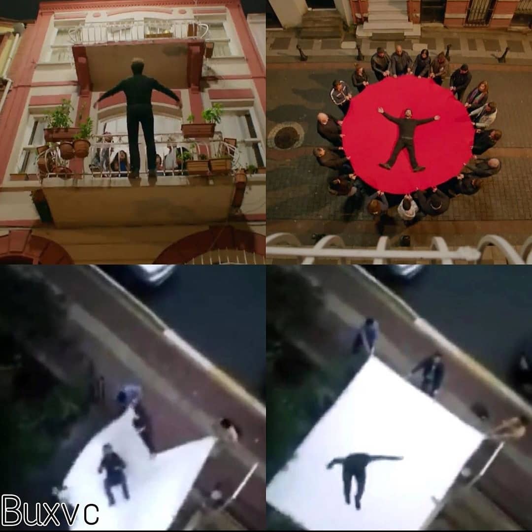 الشاب كان يحاول التدرّب على تنفيذ الفكرة عينها، وأن يقفز من الشرفة على قطعة قماش موضعة في الأسفل يمسكها أصدقاؤه، الا أنّ محاولته باءت بالفشل واصطدم رأسه بالأرض، ونقل الى المستشفى ولكن حالته ليست خطرة ووضعه مستقرّ.