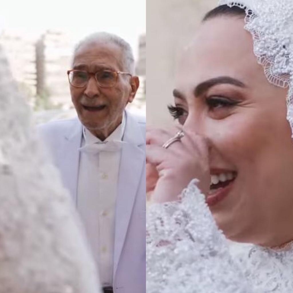 وتداول روّاد التواصل مقطع فيديو للفنان القدير وهو ينظر إلى حفيدته، مُتأثراً وهي بفستان الزفاف، في مشهد جمع بين الفرح والدموع.