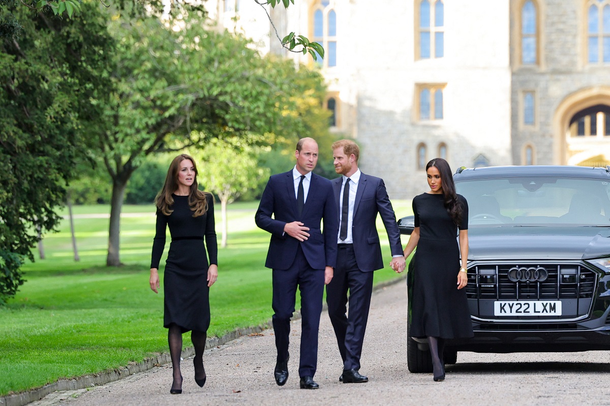 رافق الأمير هاري وزوجته ميغان ماركل الأمير وليام وزوجته كيت ميدلتون في جولة بين الحشود قرب قلعة وندسور اليوم، بعد وفاة الملكة إليزابيث الثانية، في مشهد أثار الأمل في التقارب بين الأخوين.